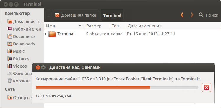 Другим способом начать использование терминала в Ubuntu является простое копирование папки с заранее установленным клиентским терминалом из системы Microsoft Windows: