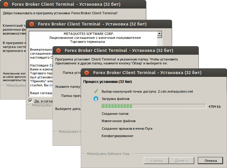 Установка клиентского терминала.